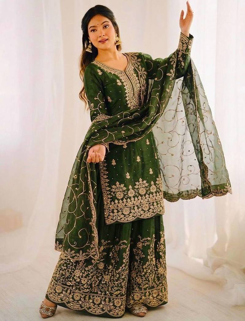 | Product Name | Green Color Gymmi Silk Embroidery Work Wedding Wear Sharara Set | |