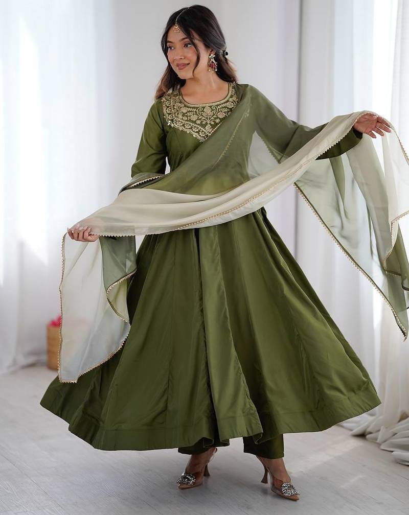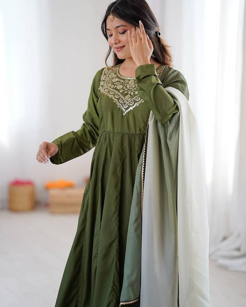 | Product Name | Green Color Soft French Creap Embroidery Work Party Wear Long Gown | |