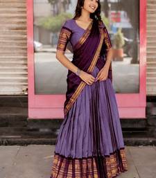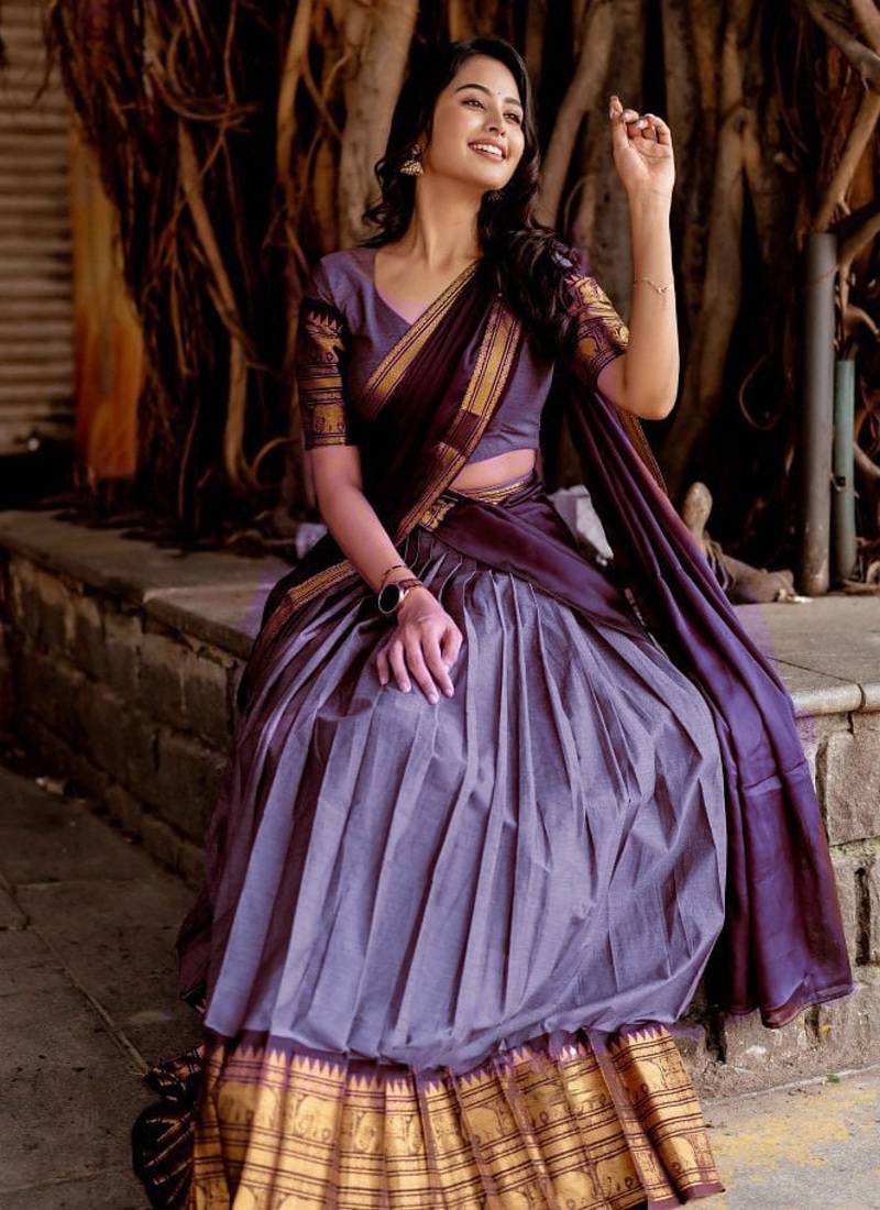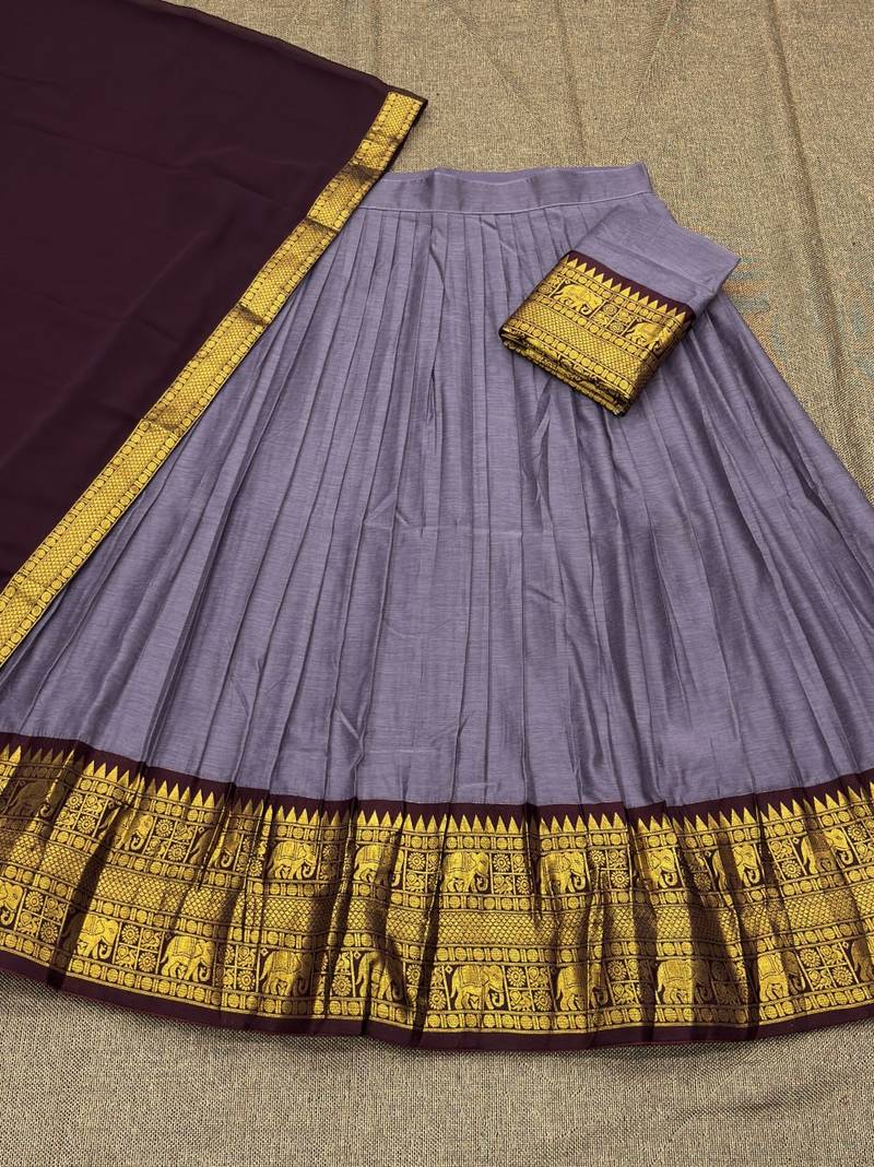 Lavender color kanchi cotton south indian functional wear lehenga choli