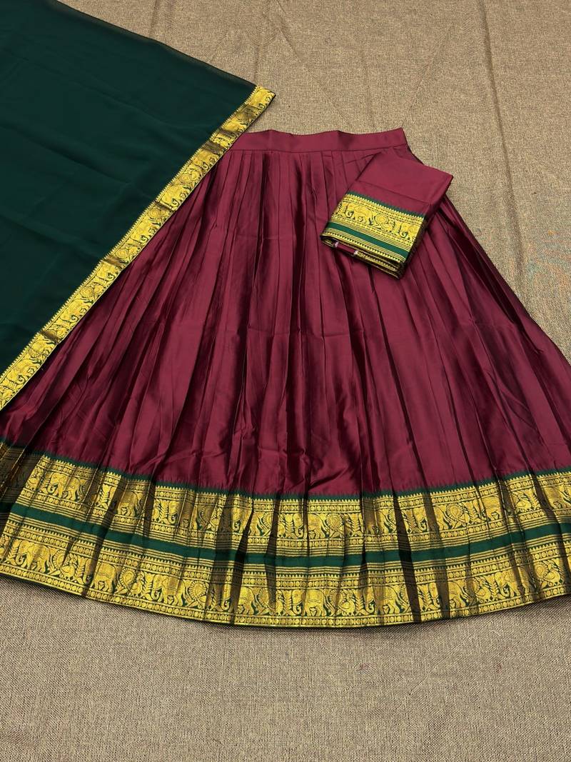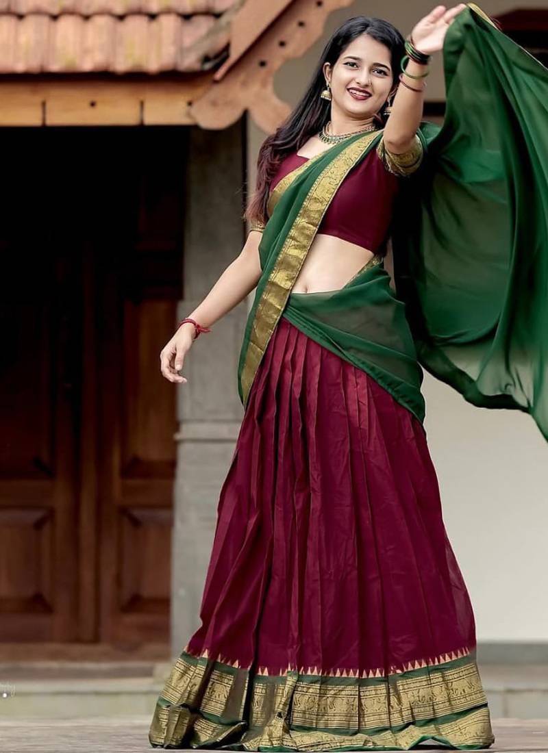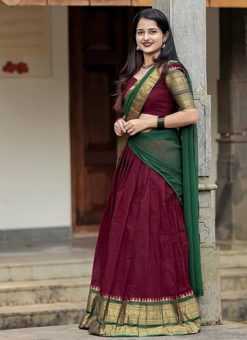 | Product Name | Maroon Color Kanchi Cotton South Indian Functional Wear Lehenga Choli | |