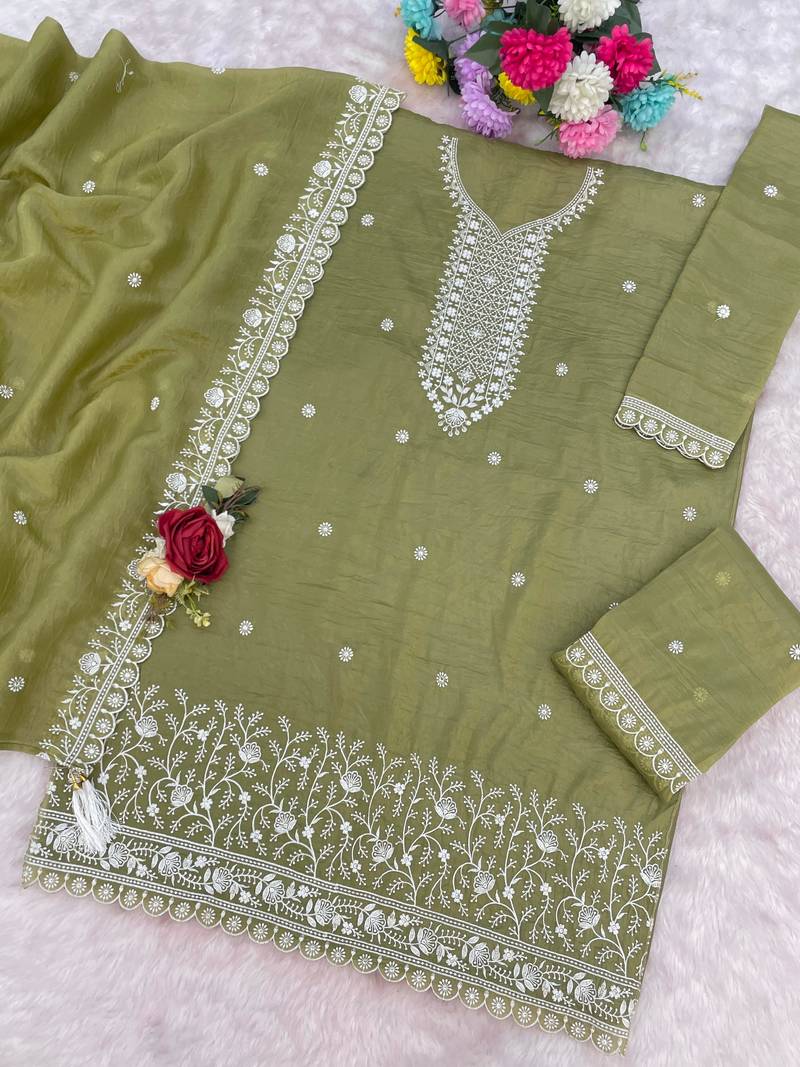 Mehendi color gold crush party wear salwar suit semi stitched