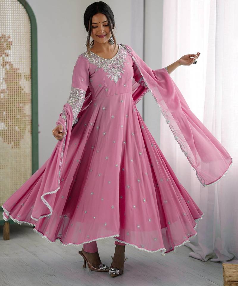 | • | Kameez | : | Color- Baby Pink / Fabric- Faux Georgette |