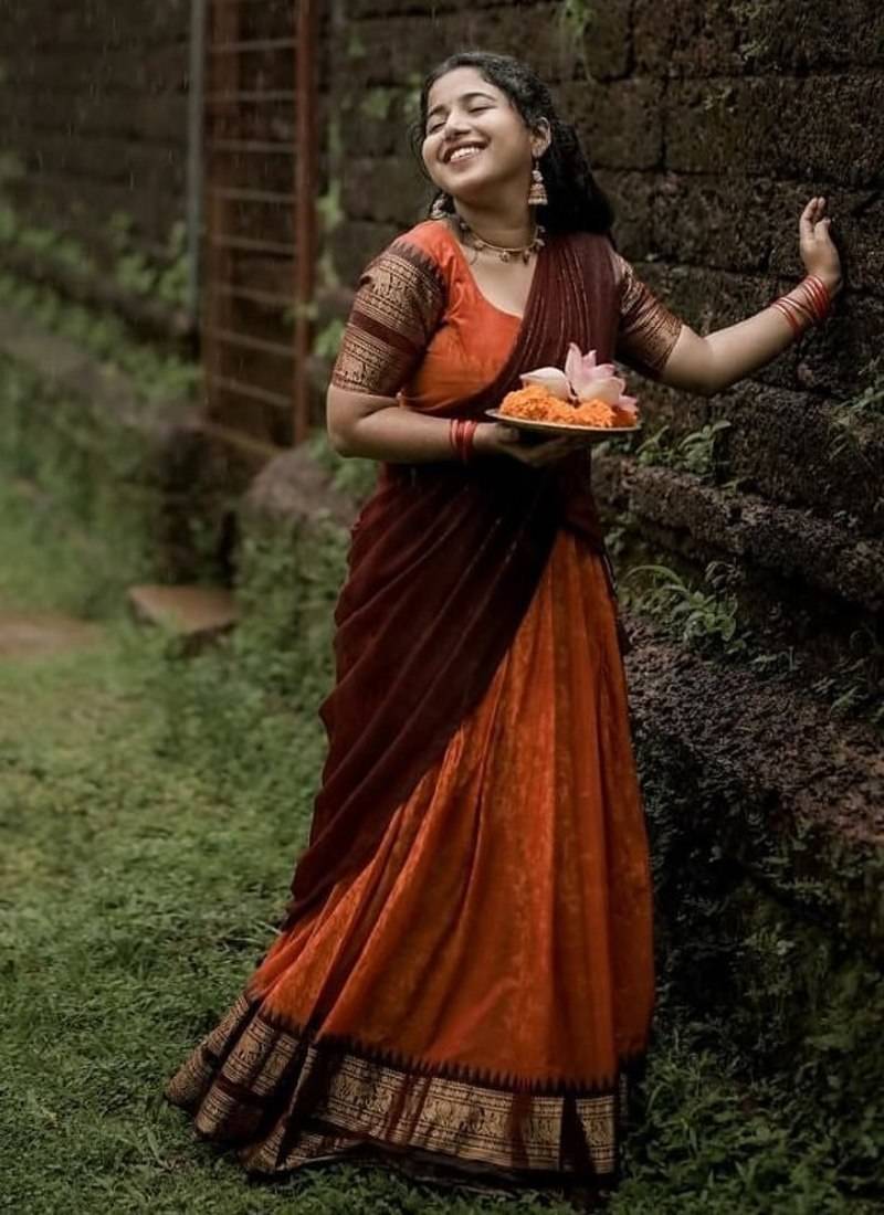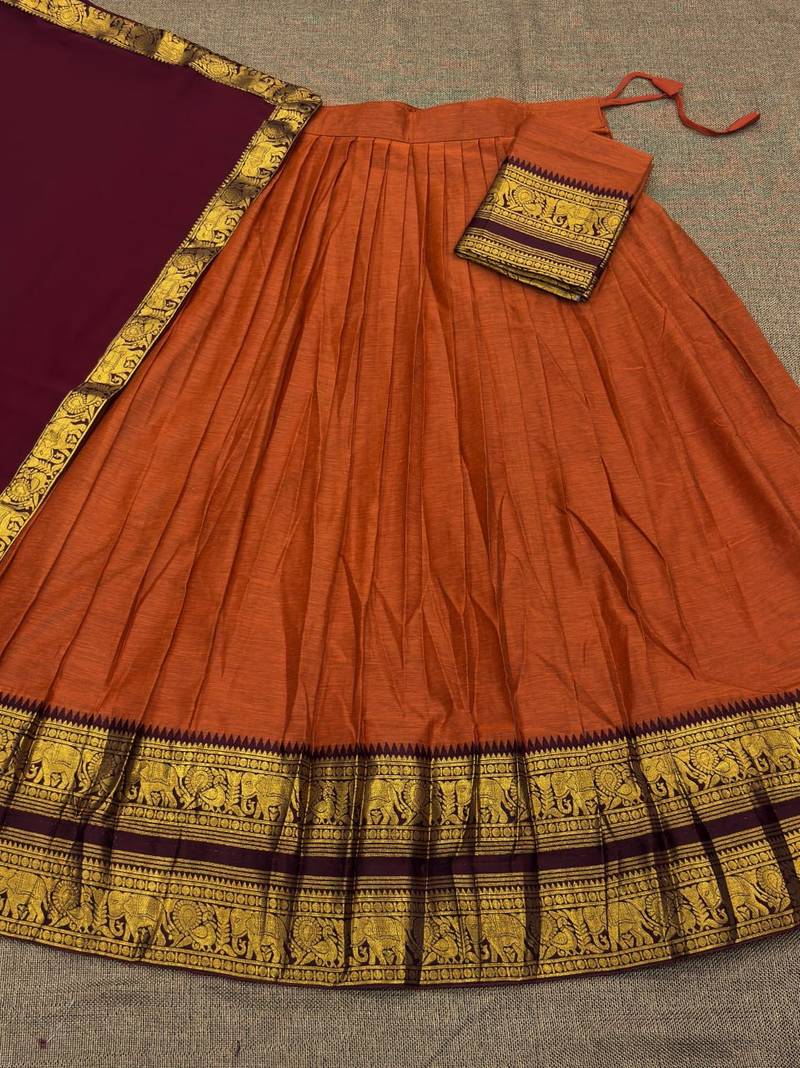 | Product Name | Orange Color Kanchi Cotton South Indian Functional Wear Lehenga Choli | |