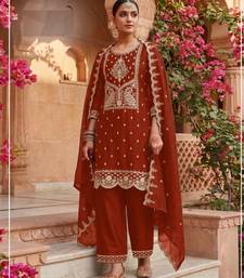Orange color party wear rangoli silk embroidery work salwar suit semi stitched