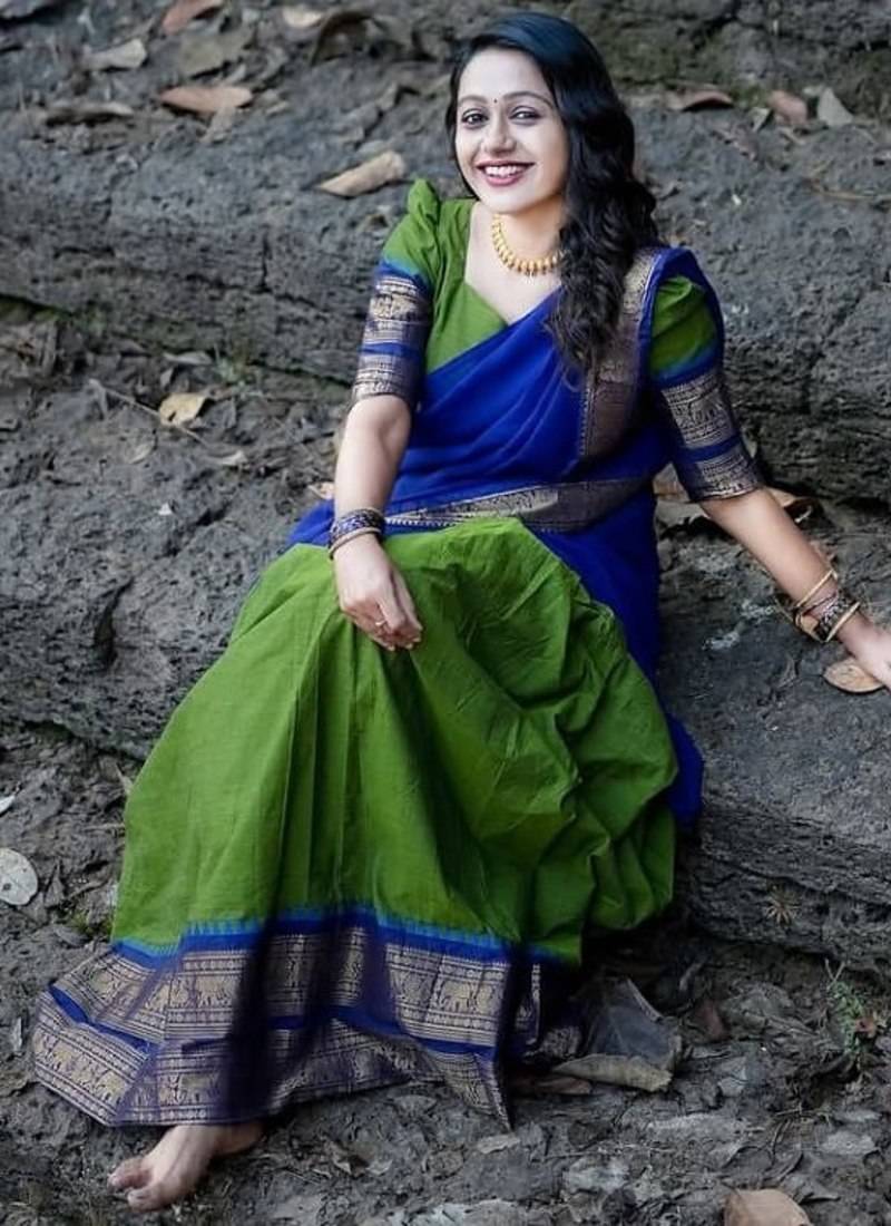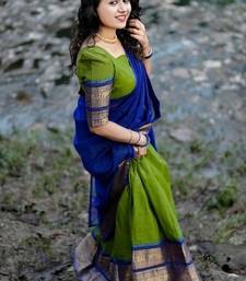 Parrot green color kanchi cotton south indian functional wear lehenga choli