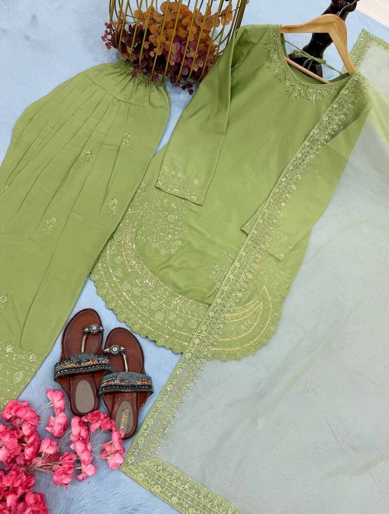 Green color natural creap silk designer fency party wear salwar suit stitched