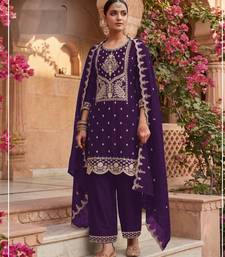 Purple color party wear rangoli silk embroidery work salwar suit semi stitched