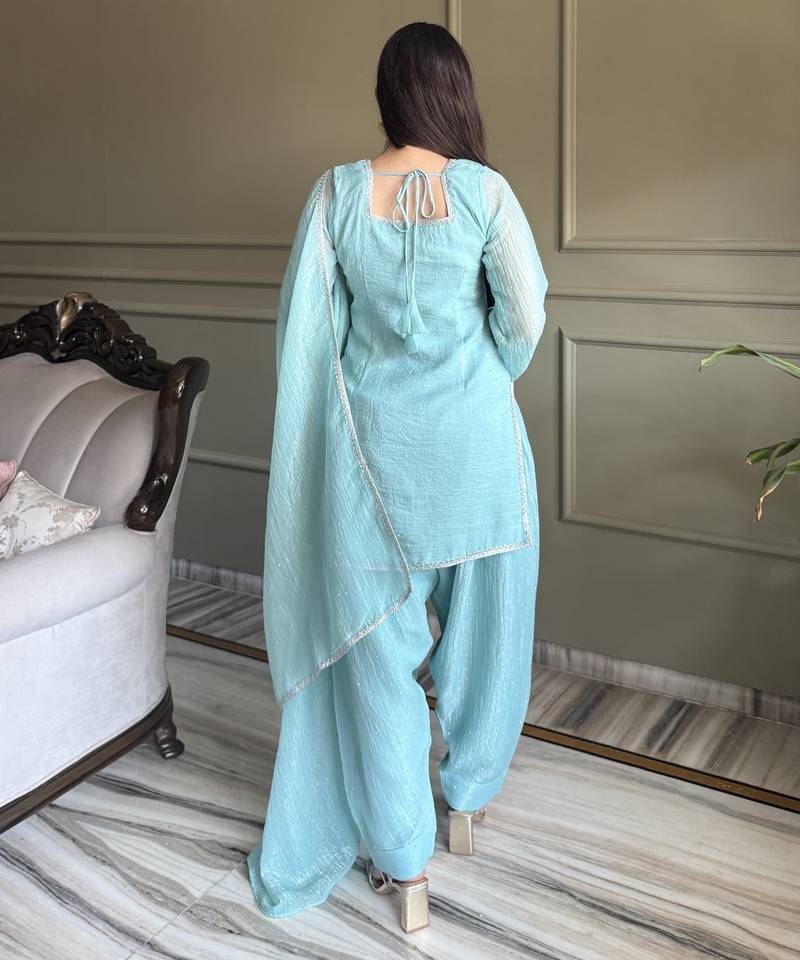 Sky color crunchy silk party wear salwar suit stitched