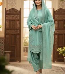 Turquoise color natural creap silk designer fency party wear salwar suit stitched