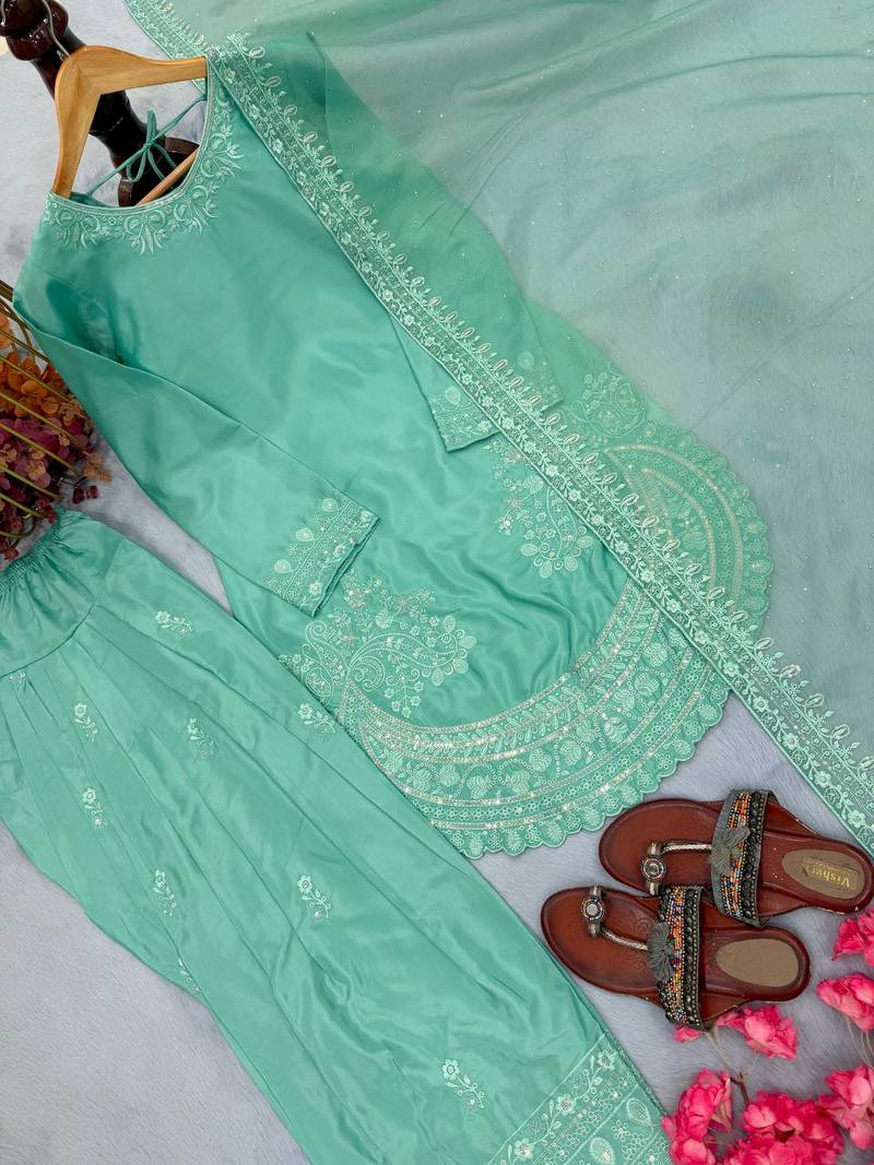 | Product Name | Turquoise Color Natural Creap Silk Designer Fency Party Wear Salwar Suit | |