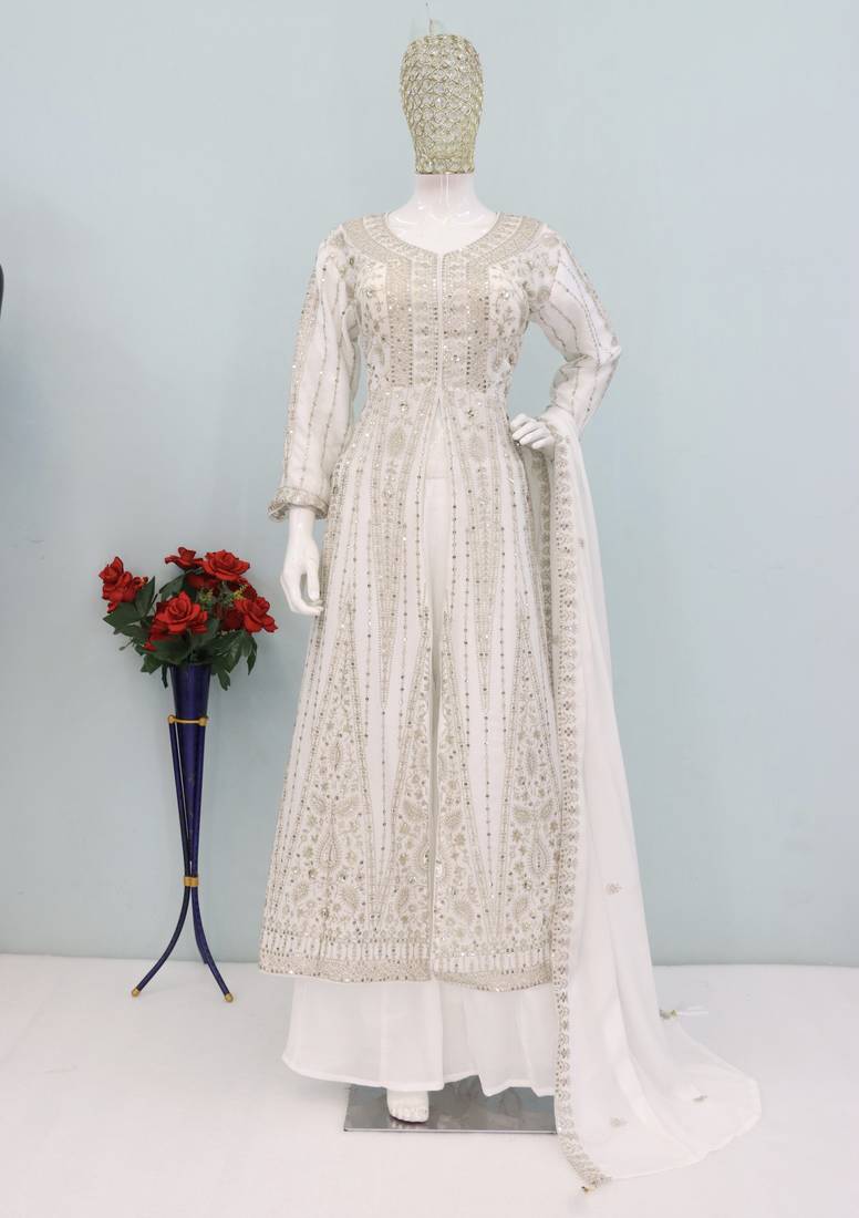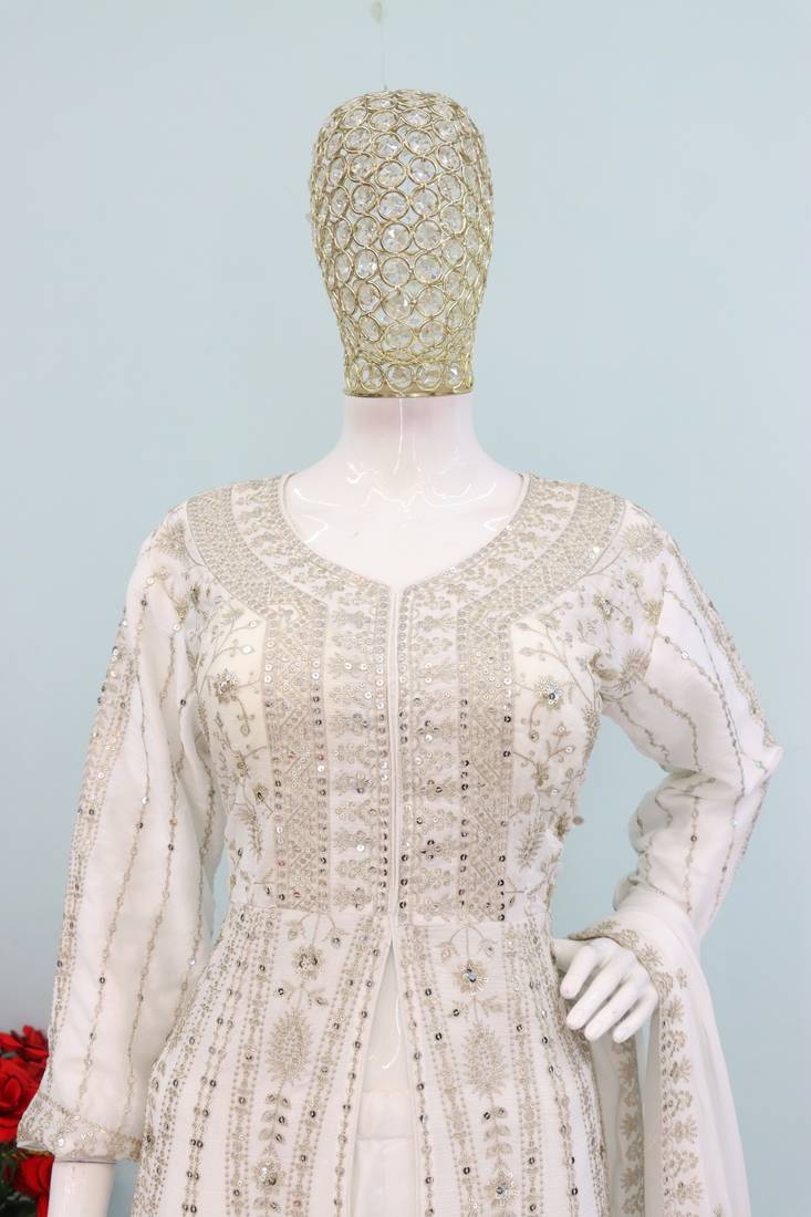 | Product Name | White Color Chinnon Silk Heavy Embroidery Work Party Wear Long Gown | |