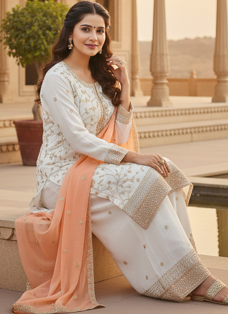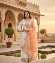 | Product Name | White Color Faux Georgette Embroidery Work Long Party Wear Plazo Suit | |