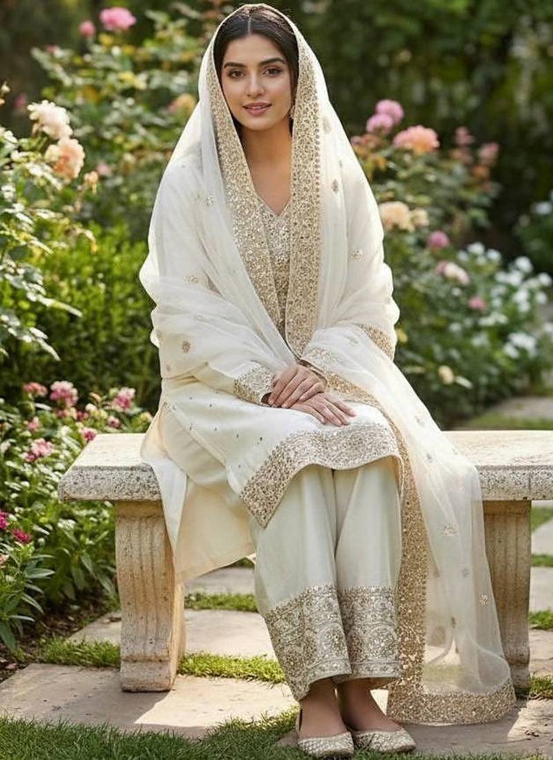 | Product Name | White Color Fendy Silk Embroidery Work Wedding Wear Salwar Suit | |