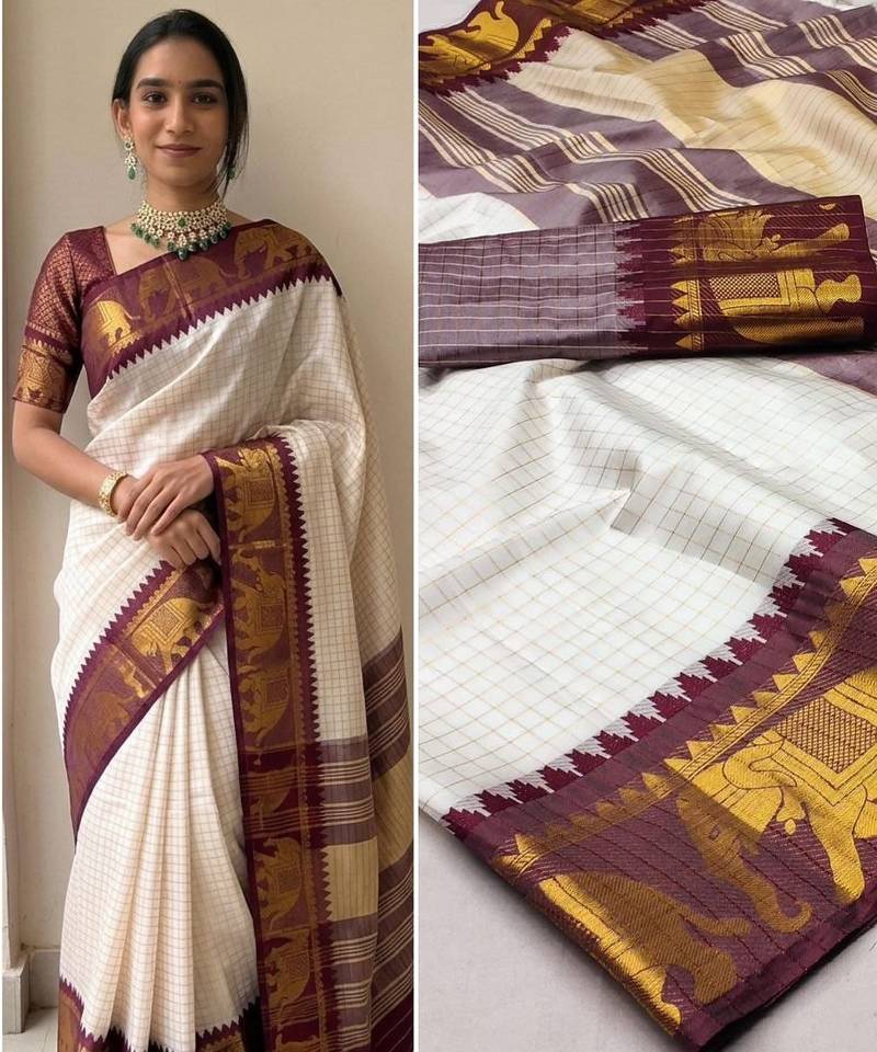 | Product Name | White Mercerised Cotton Silk Traditional Wear Saree | |
