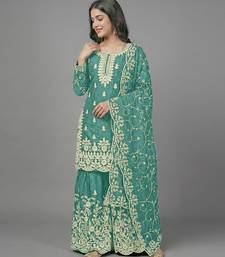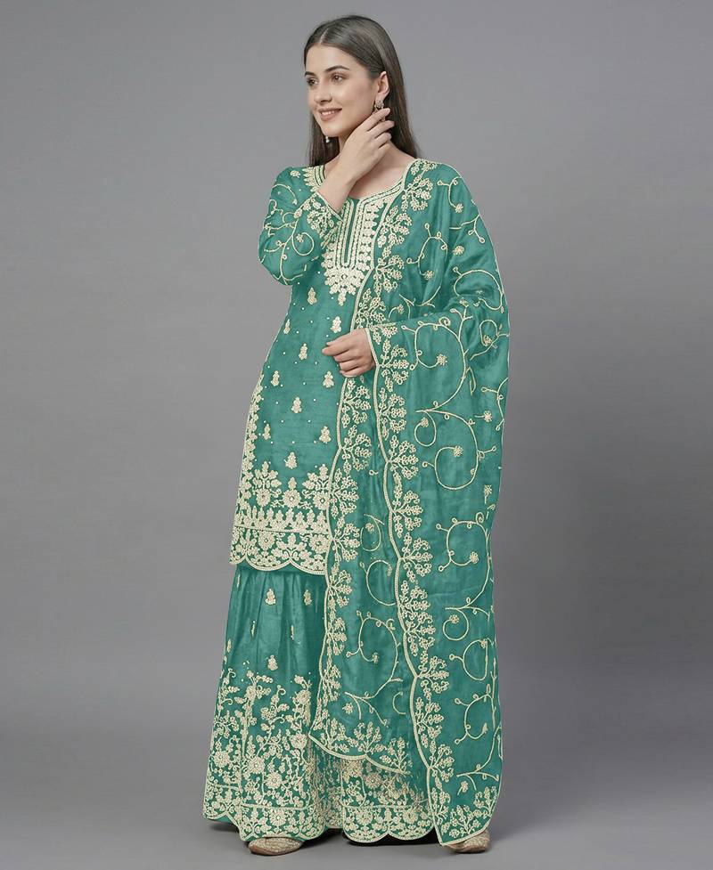 Womens new trendy pure gmy silk with heavy embroidery sequence work kurta set stitched