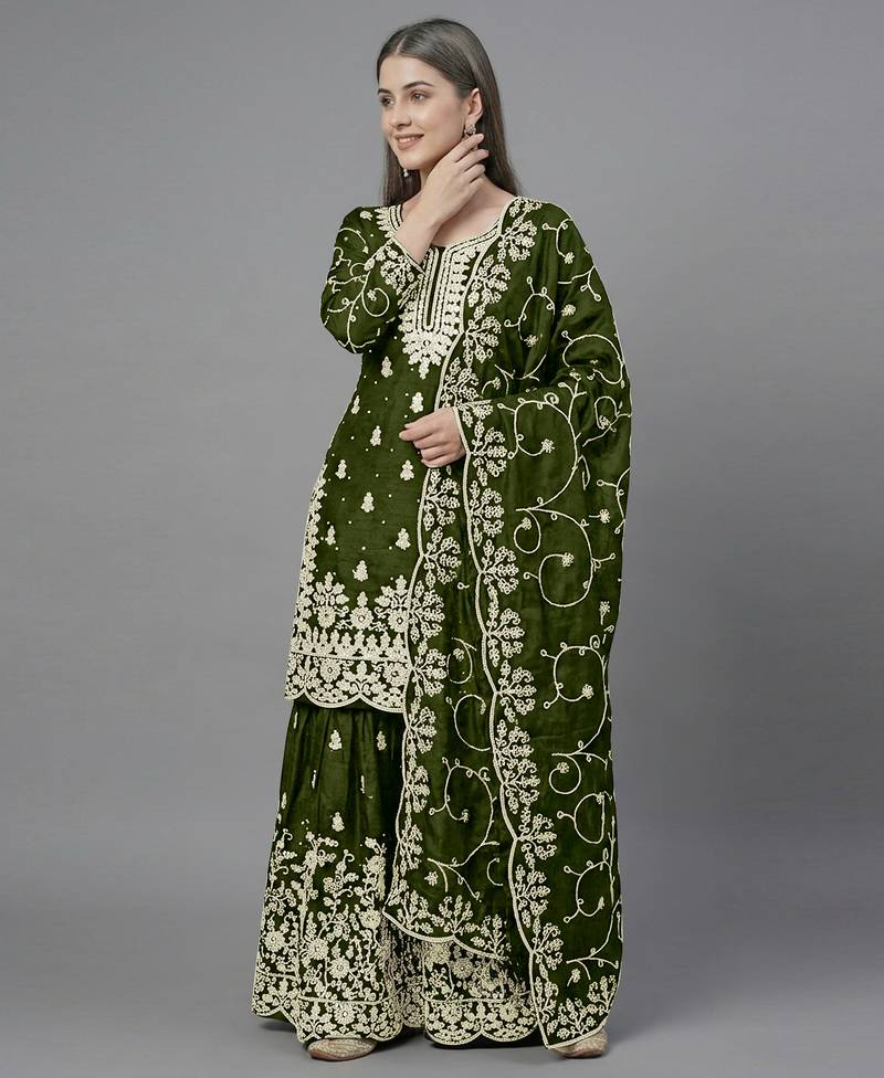 Womens new trendy pure gmy silk with heavy embroidery sequence work kurta set stitched