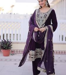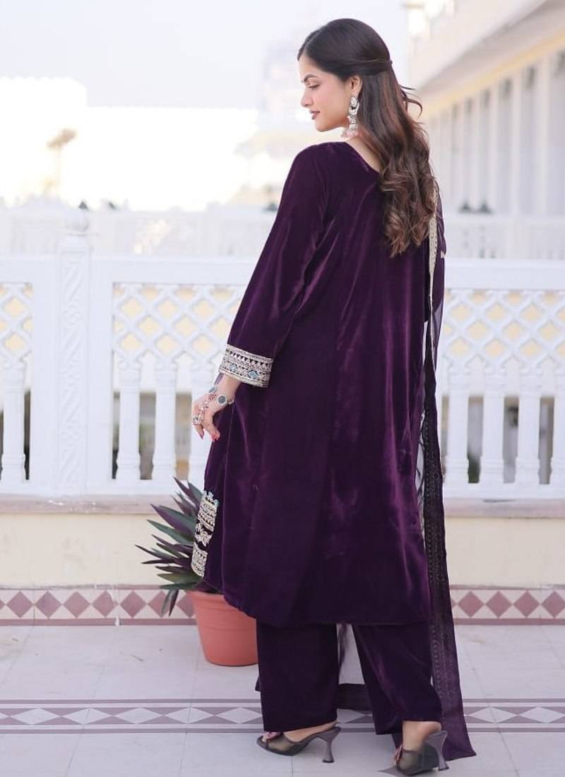 | Product Name | Womens New Wine Velvet With Rich Zari Coding Embroidered Work Kurta Pant Duppata Set | |
