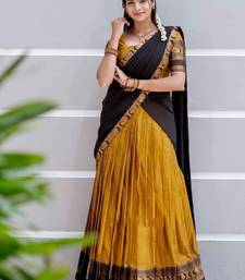 Yellow color kanchi cotton south indian functional wear lehenga choli