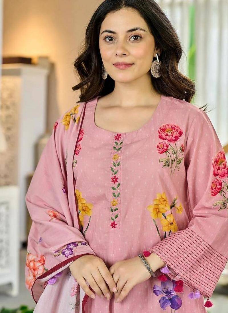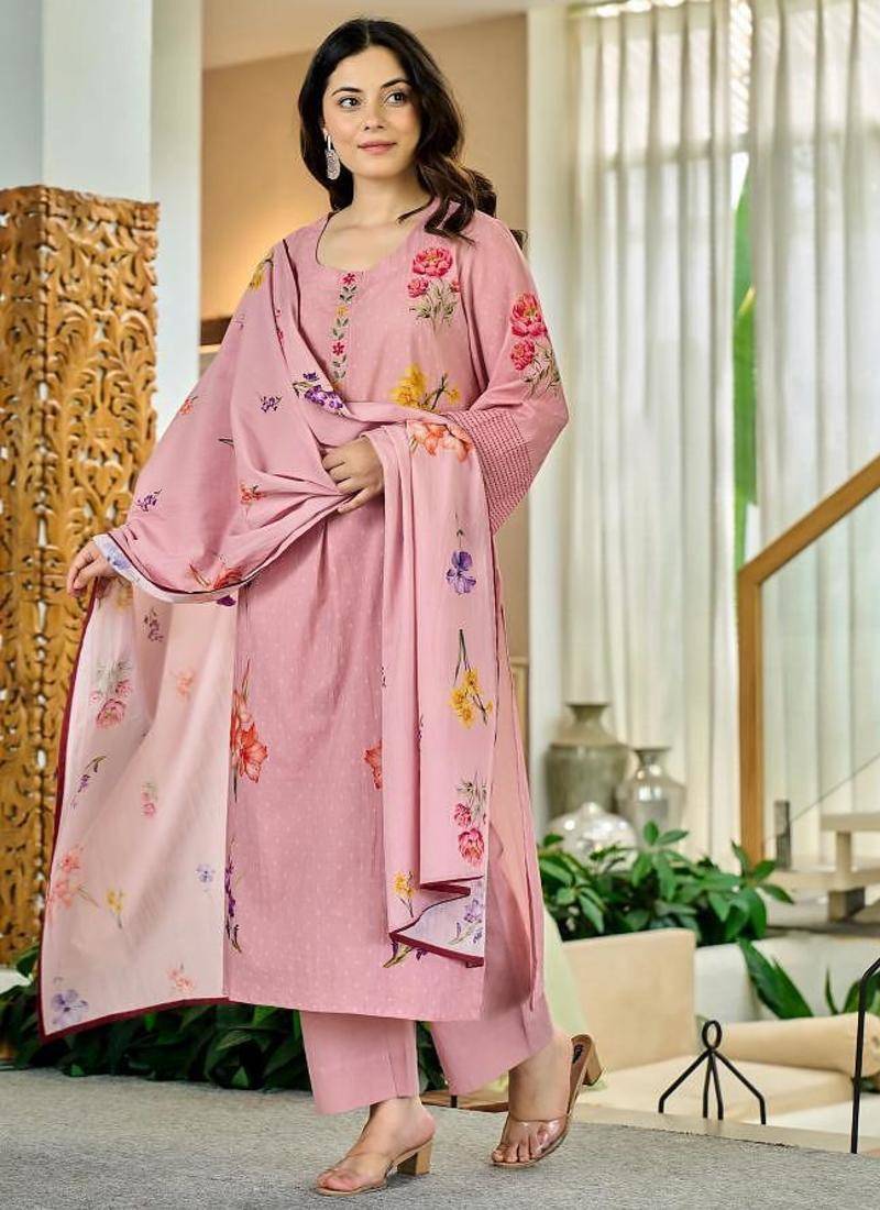 | • | Dupatta | : | Color- Pink / Fabric- Silk Blend |