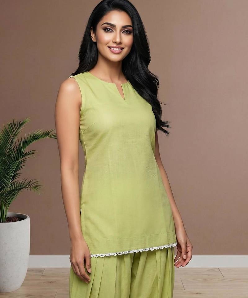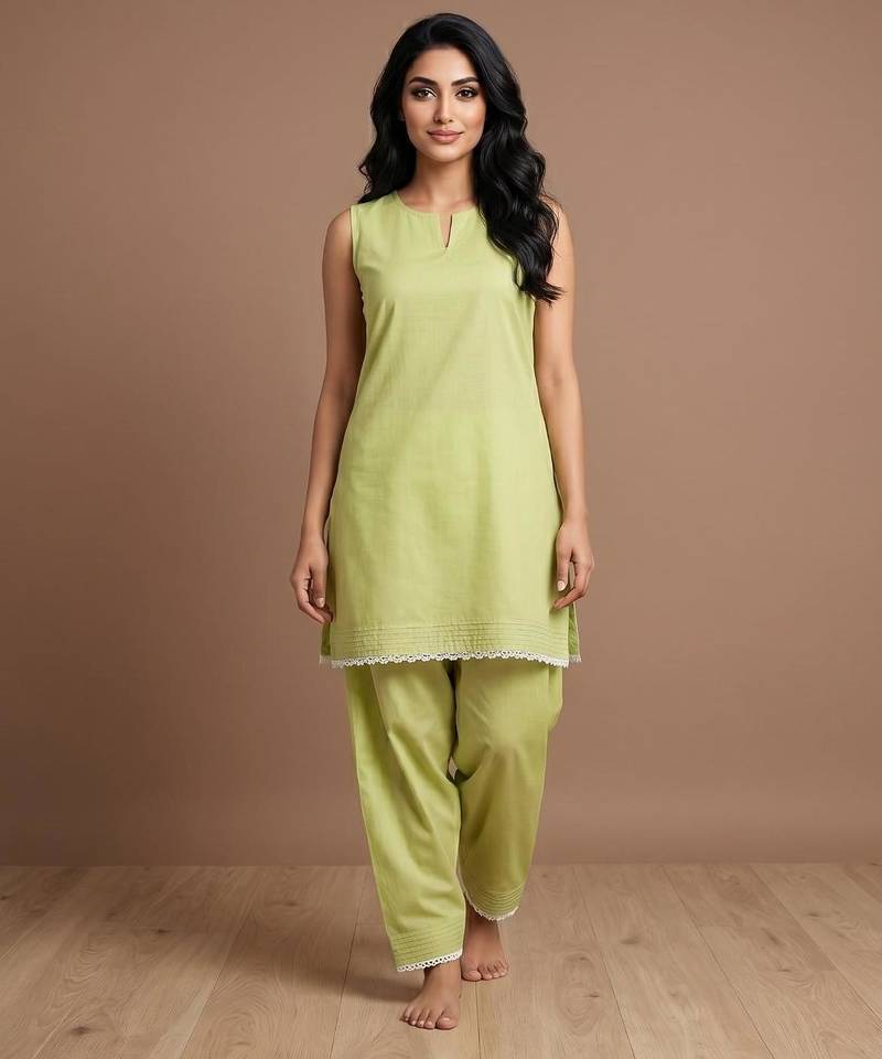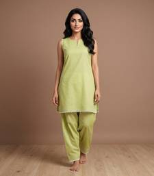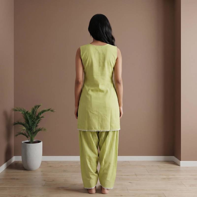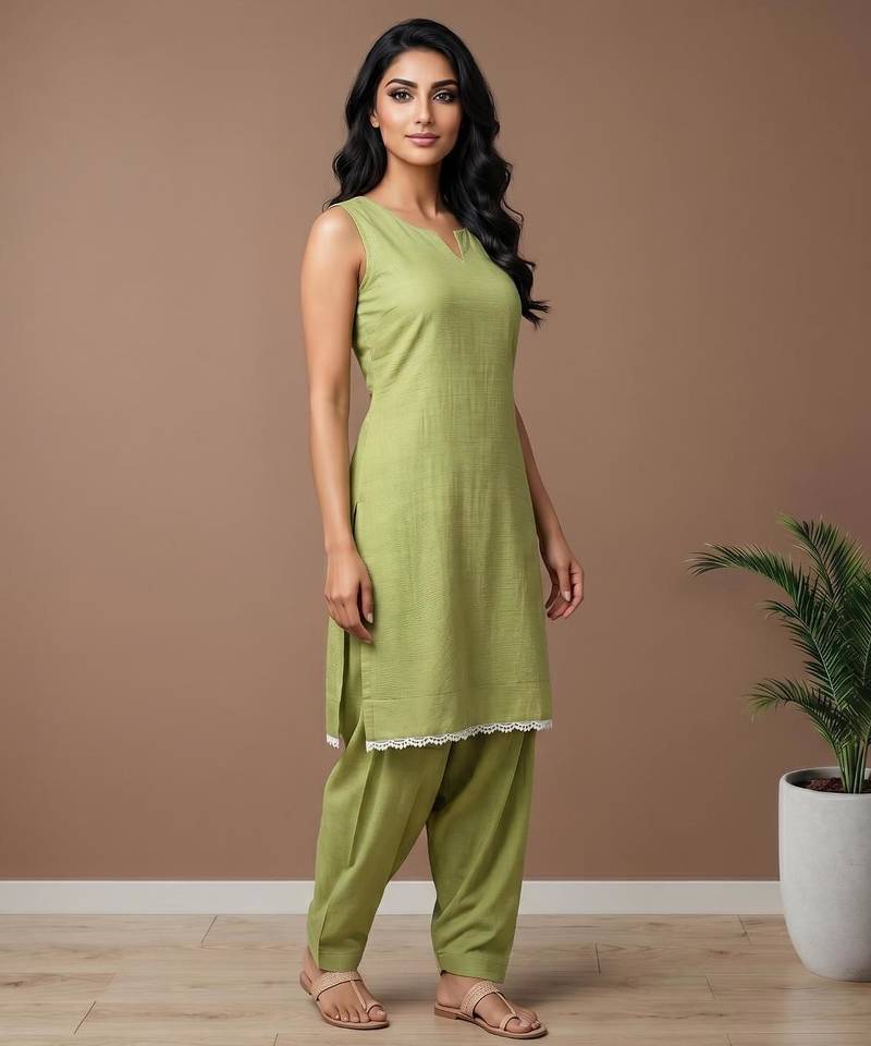 | Product Name | Pista Slub Cotton Kurta With Loose Fit Farshi Salwar | |