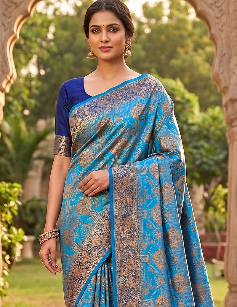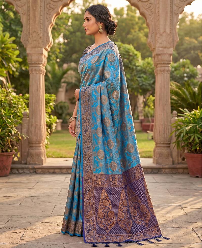 | Product Name | Blue Jacquard Silk Saree With Rich Zari Work Border With Unstitched Blouse Piece | |