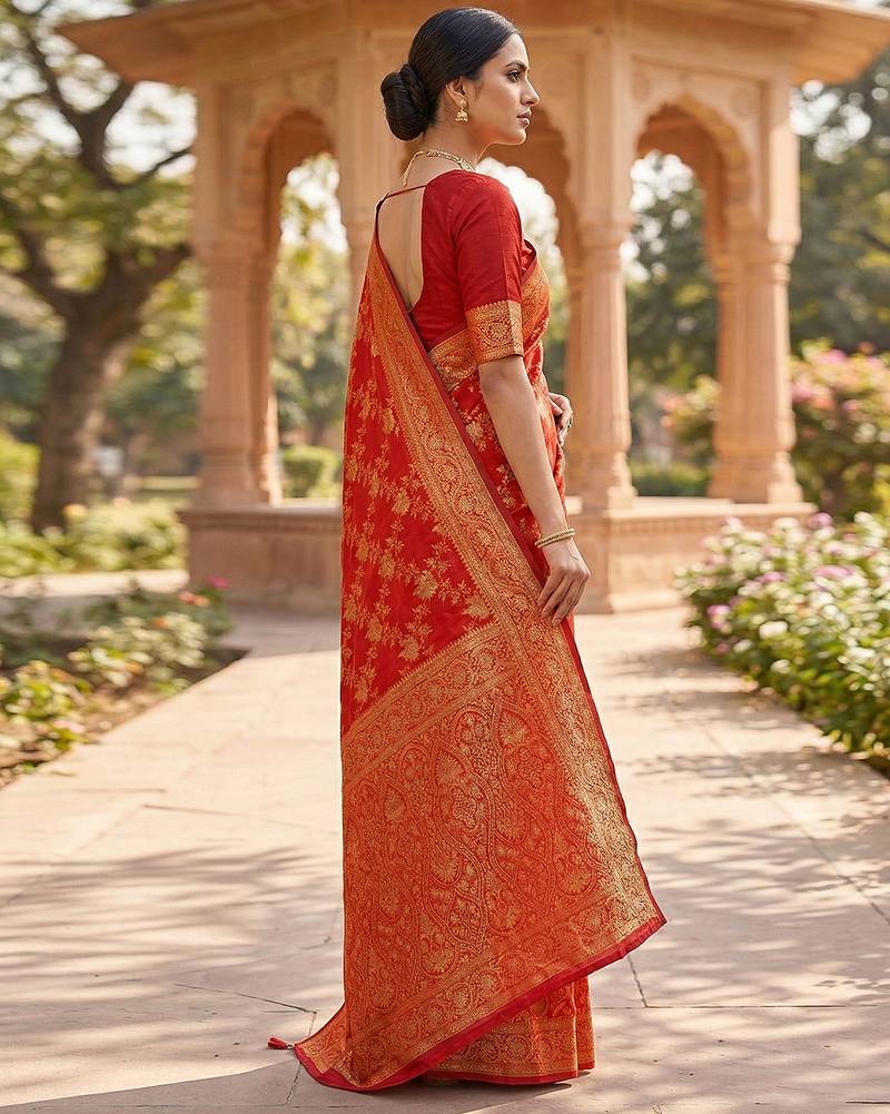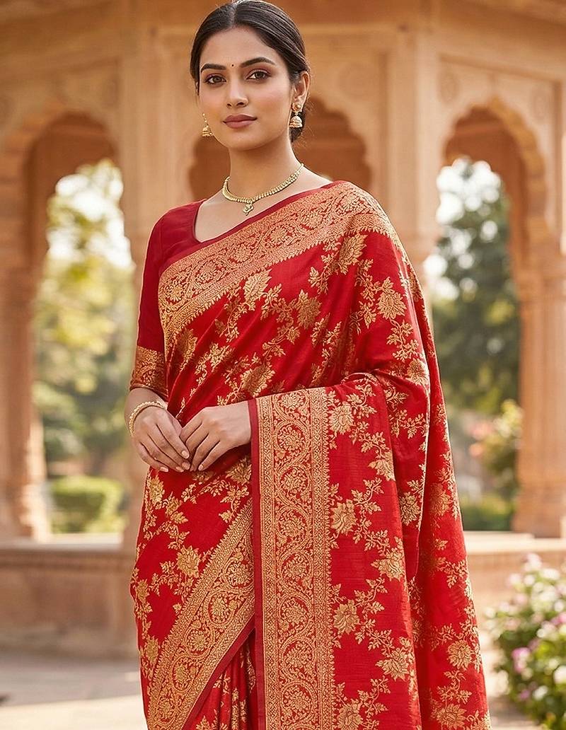 | Product Name | Jacquard Silk Woven Zari Work Red Traditional Ethnic Wear Saree With Unstitch Blouse Piece | |