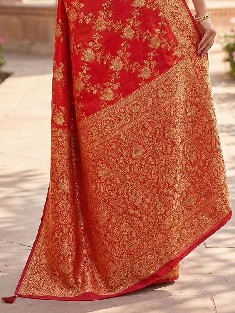 Jacquard silk woven zari work red traditional ethnic wear saree with unstitch blouse piece