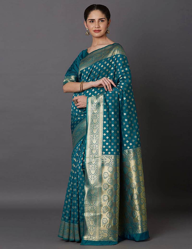 | • | Saree | : | Color- Teal / Fabric- Jacquard |