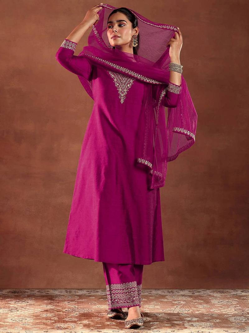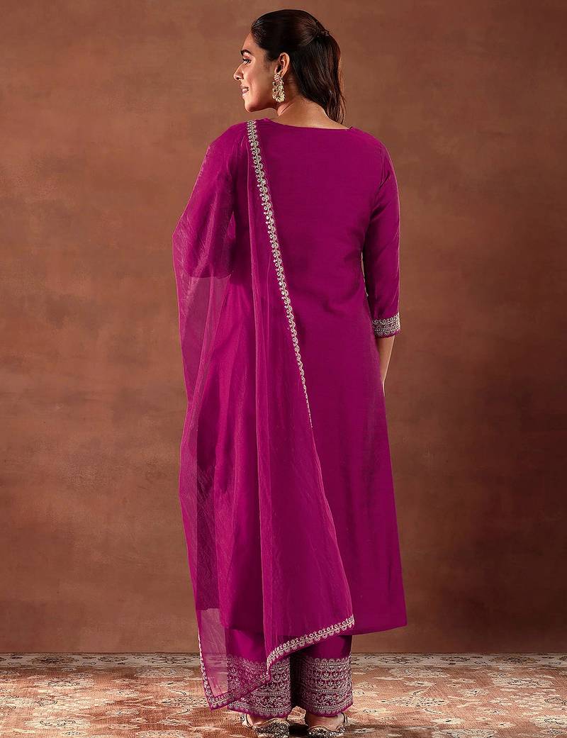 | Product Name | Pink Embroiderey Sequence Work Kurta Pant Dupatta Set For Women | |