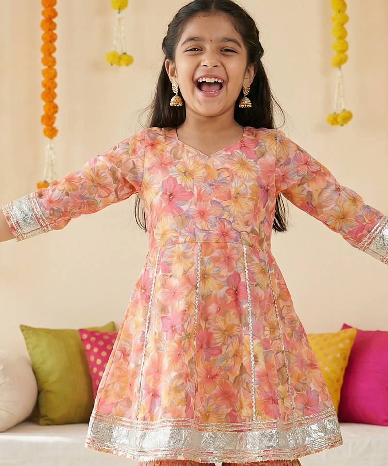 | Product Name | Girl's Silk Blend Floral Print A Line Kurta Sharara With Dupatta Set | |