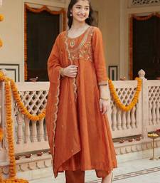 Girl's vichitra silk sequins embroidered anarkali kurta pant with dupatta set