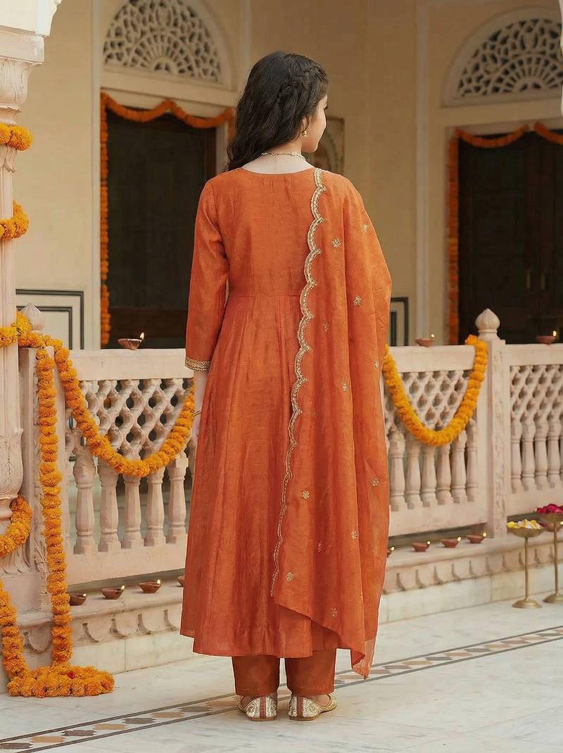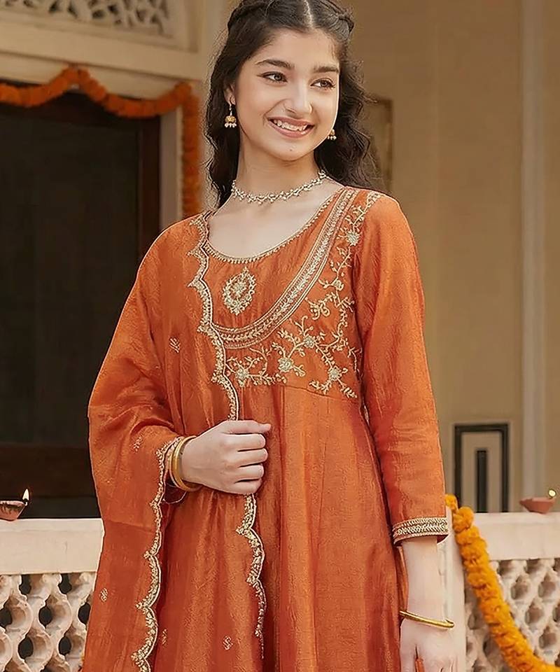 | Product Name | Girl's Vichitra Silk Sequins Embroidered Anarkali Kurta Pant With Dupatta Set | |