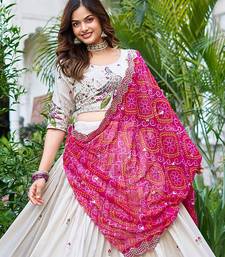Womens's chinnon traditional motiff semi-stitched lehenga choli with bandhani dupatta set
