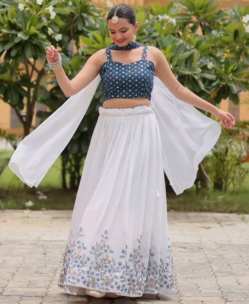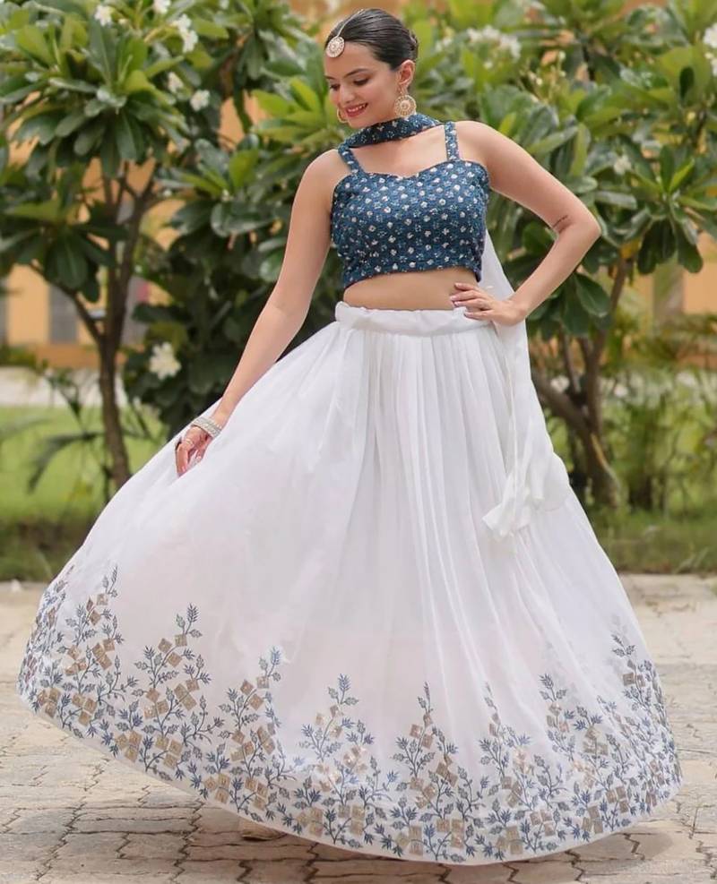 | Product Description | Step Into Effortless Elegance With This Women’s Lehenga Choli With Dupatta Set, Beautifully Crafted In Lightweight Georgette Fabric For A Soft, Flowy Drape. The Lehenga Features A Graceful Flare With Delicate Floral Embroidery Along The Hem, Creating A Subtle Yet Eye Catching Pattern. The Choli Is Designed With Fine All Over Embroidered Motifs And A Stylish Neckline, Adding A Modern Ethnic Touch. Paired With A Matching Georgette Dupatta, This Ensemble Offers A Fresh, Classy Appearance—Perfect For Festive Occasions, Mehendi Functions, And Celebratory Evenings. |