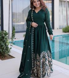 Amazing bottle green sequins crushed mehendi wear gown with dupatta stitched