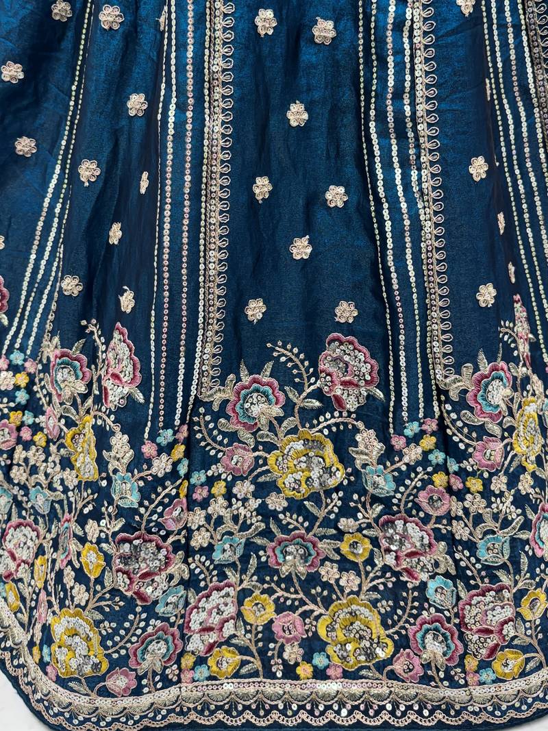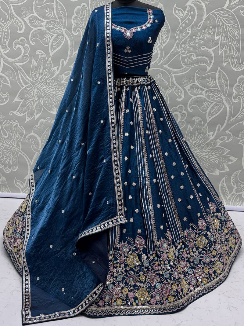 | Product Name | Dazzling Teal Blue Sequins Oragnza Marriage Wear Lehenga With Blouse | |