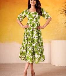 Fantastic mehendi green floral printed silk daily wear dress stitched