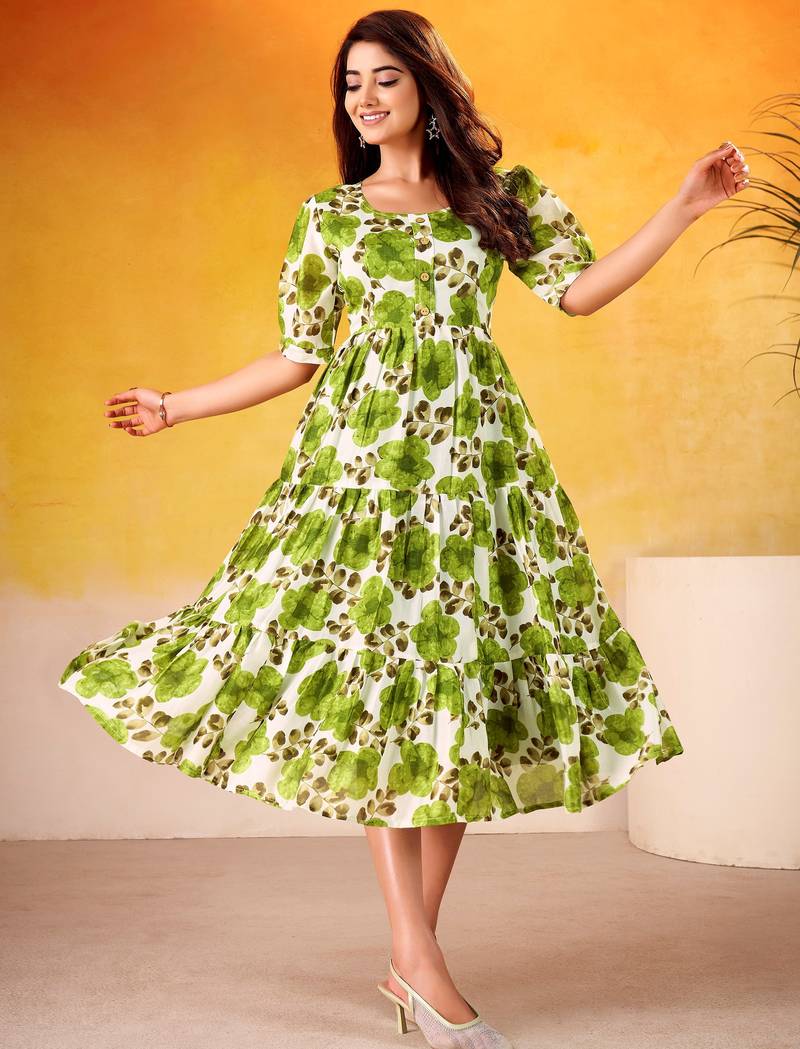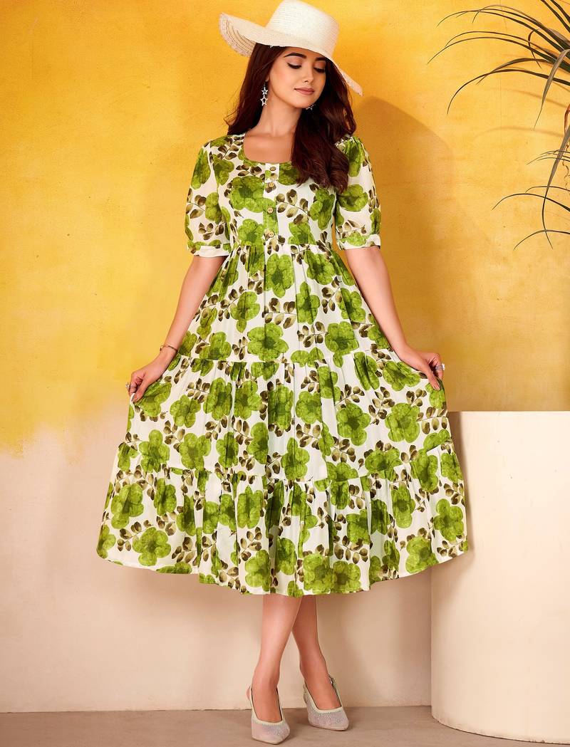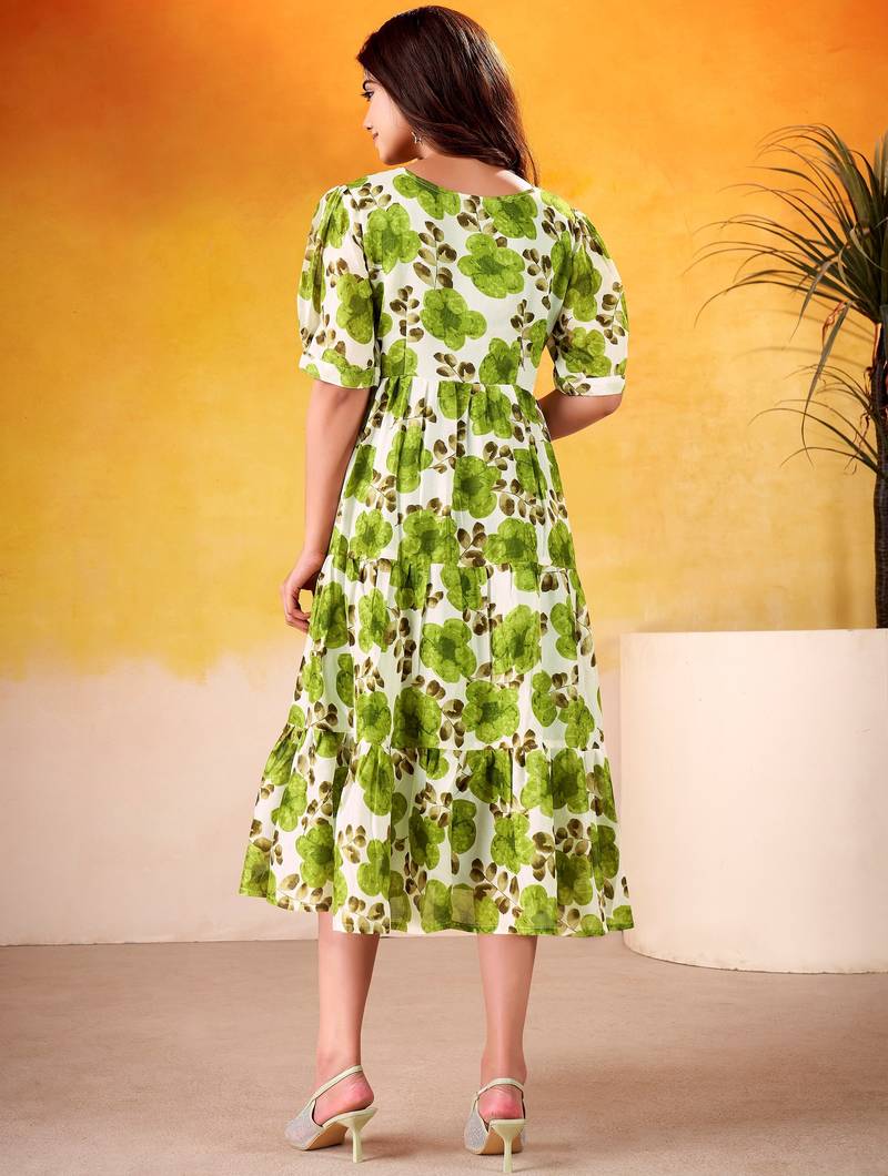This Blend Of White, Leaf Green, And Olive Shades Creates A Soft And Refreshing Vibe, Making It Perfect For Casual Outings, Daytime Wear, And Summer Styling.