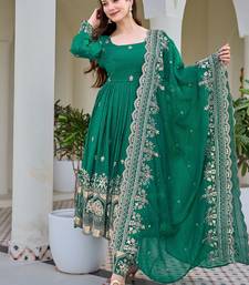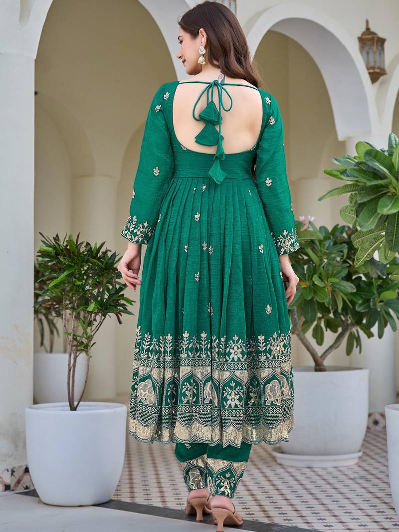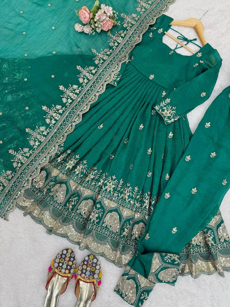 Gorgeous green sequins silk mehendi wear anarkali pant suit stitched