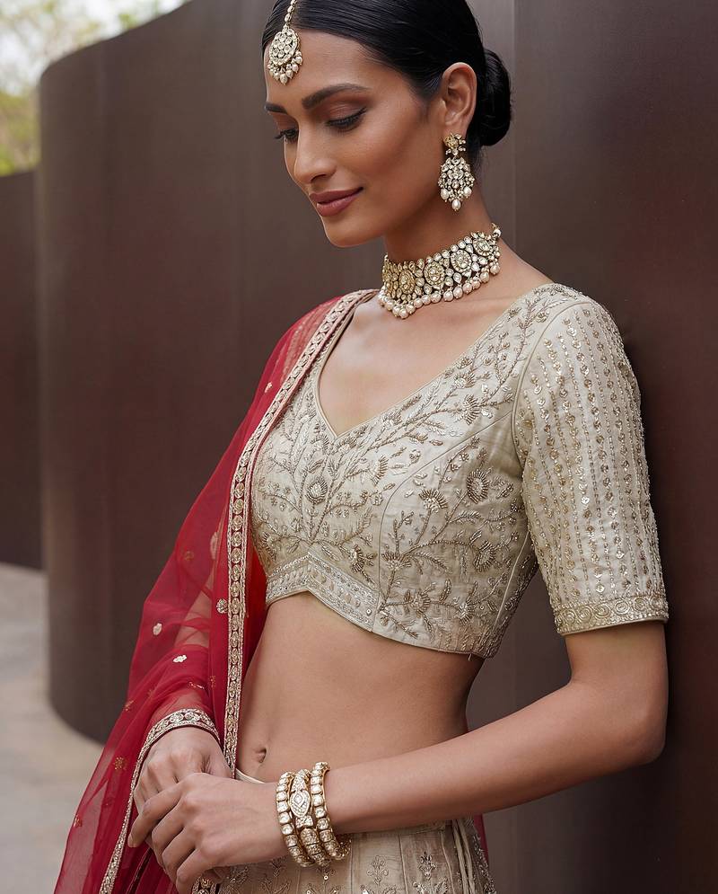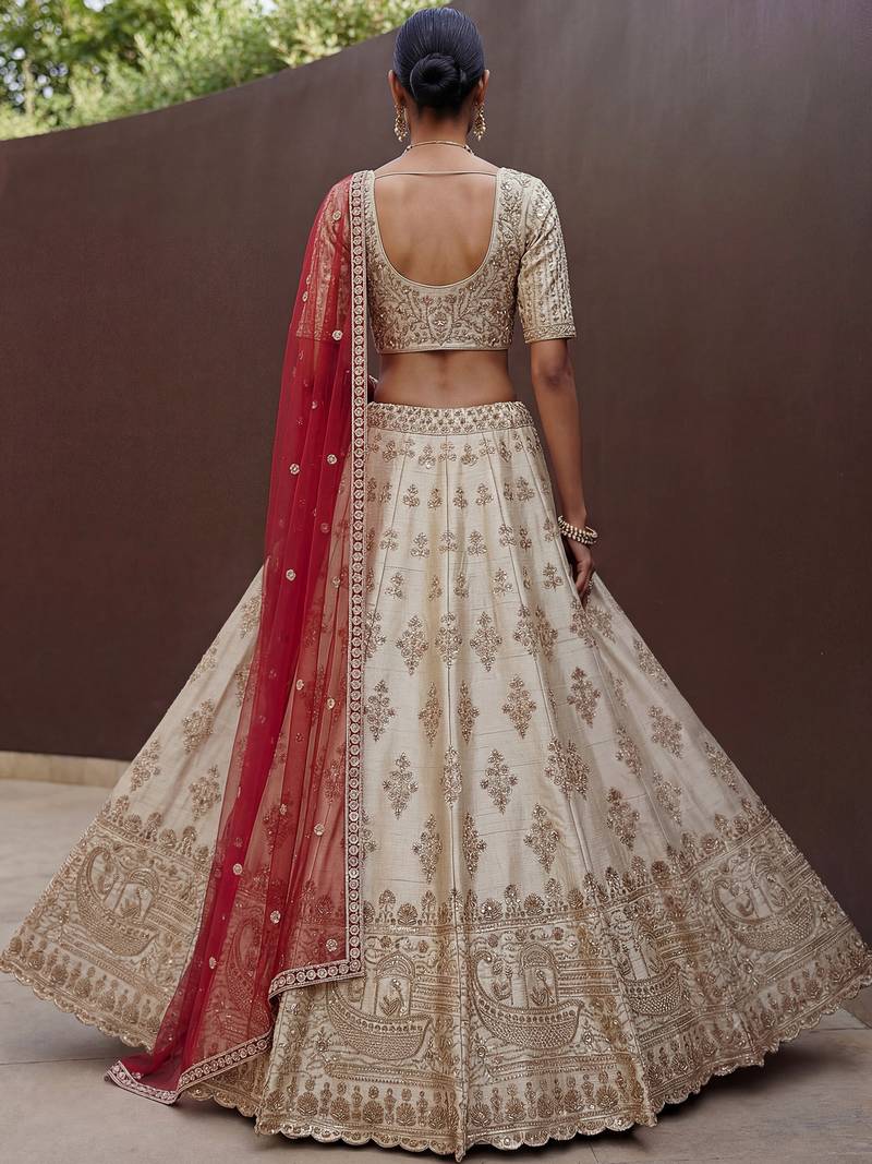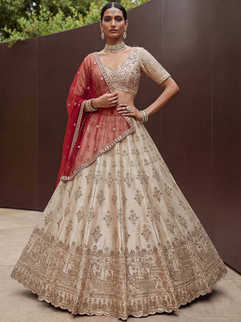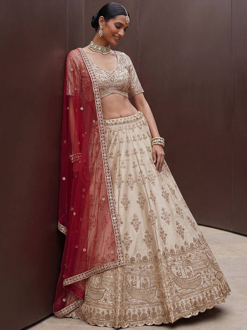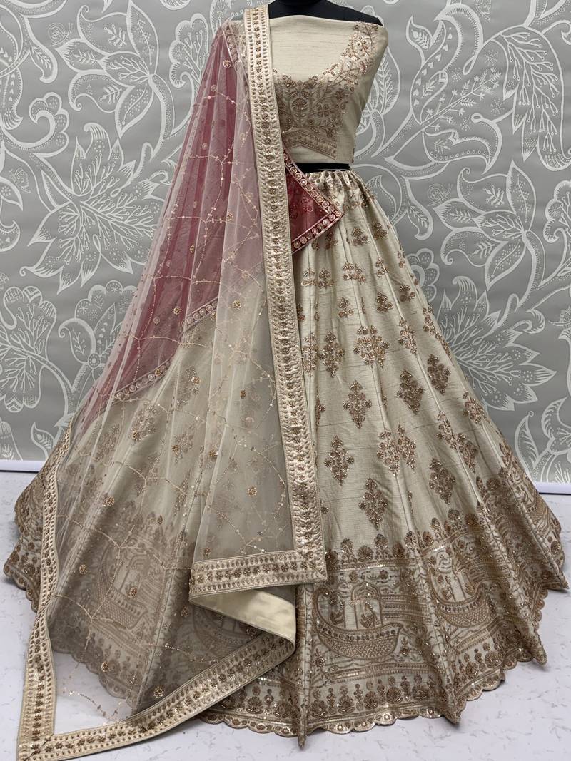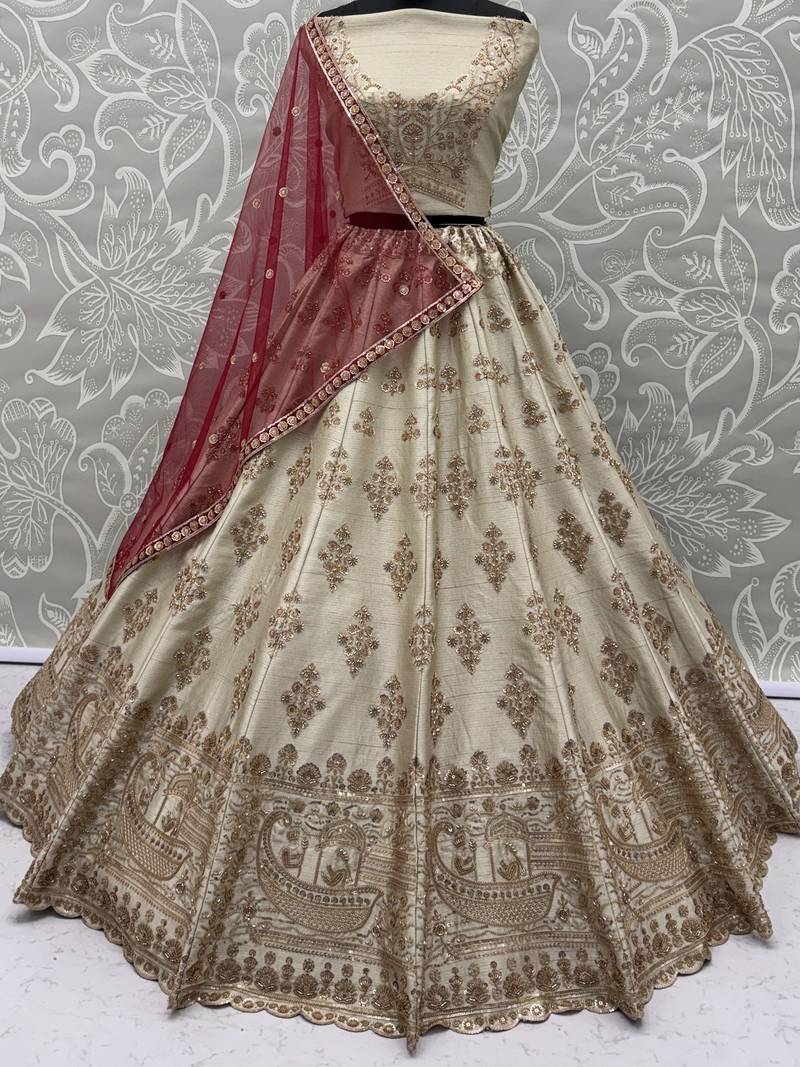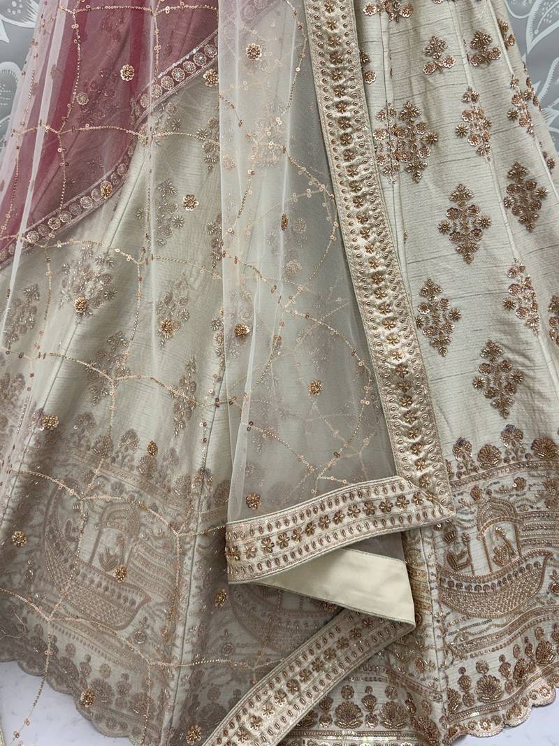 | Product Name | Lavish Beige Zari Work Silk Bridal Lehenga Choli With Double Dupatta | |
