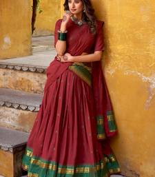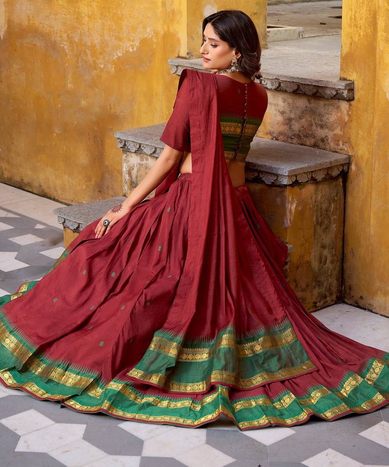 Lovely maroon zari weaving chanderi wedding wear half saree lehenga