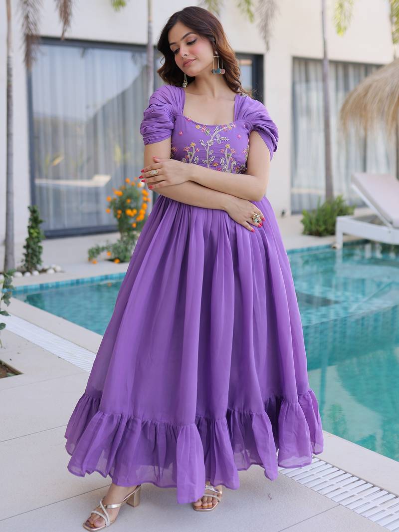 | Product Name | Notable Purple Bead Work Chanderi Festive Wear Dress | |