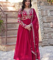 Noteworthy pink floral work georgette engagement wear gown with dupatta stitched