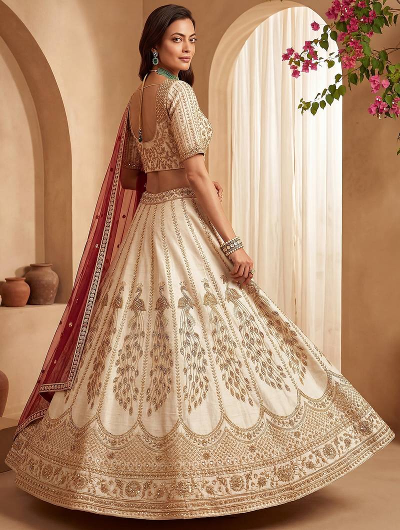 | Product Description | Presenting An Elegant Off White Silk Lehenga, Beautifully Highlighted With Intricate Gold Zari, Sequins, Crystal, And Multi Thread Embroidery, Creating A Soft Yet Regal Color Contrast. This Lehenga Can Be Customized Up To 42 Inches For A Perfect Fit.