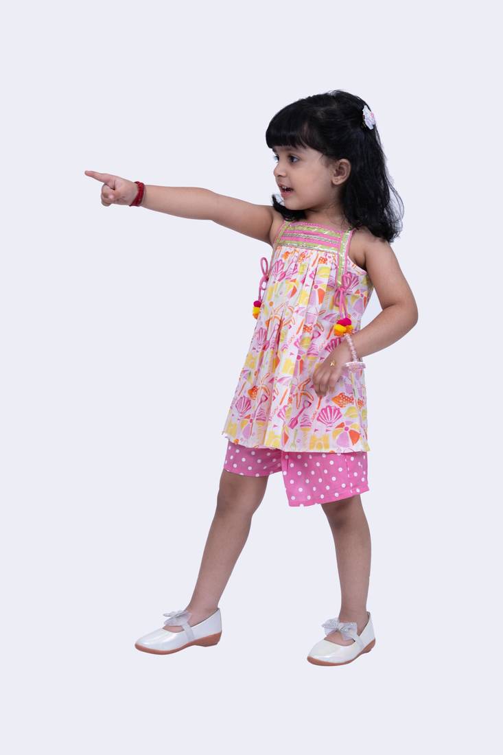 | Product Name | Twisha Smart Cotton Printed Breezy Beach Top & Polka Printed Shorts White & Pink | |
