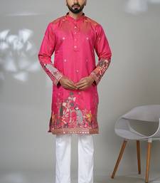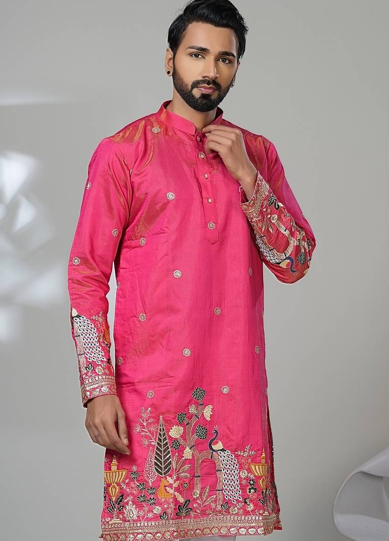 Aesthetic rani pink embroidery kurta for men | premium designer men's kurta