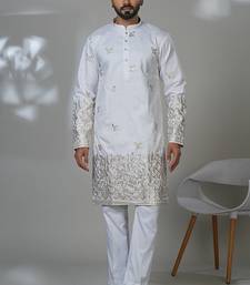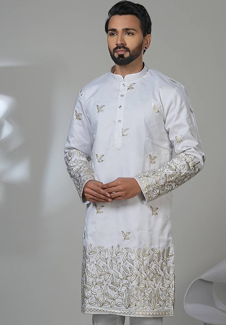Aesthetic white embroidery kurta for men | premium designer men's kurta