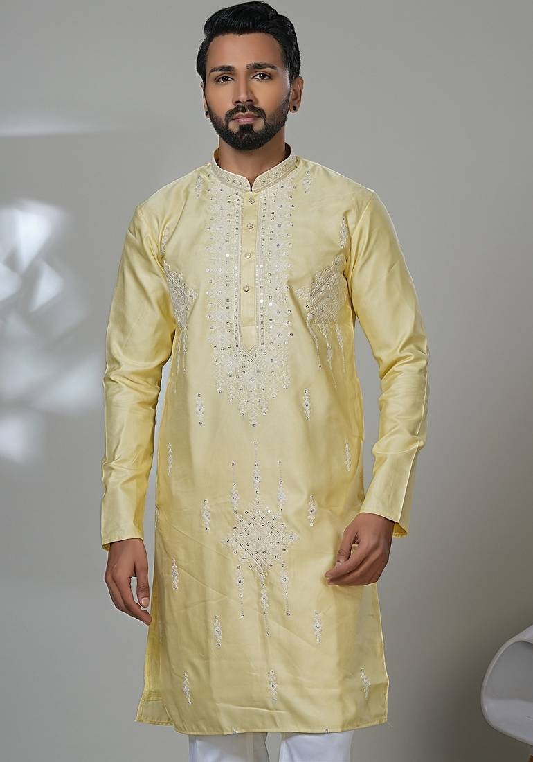 | Product Name | Aesthetic Yellow Color Neck Embroidery Kurta For Men | Premium Designer Men's Kurta | |