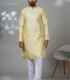 Aesthetic yellow color neck embroidery kurta for men | premium designer men's kurta