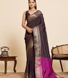 | Product Name | Women's Dark Brown Zari Striped Two Tone Pallu Silk Blend Saree With Rich Border And Unstiched Blouse Piece | |
